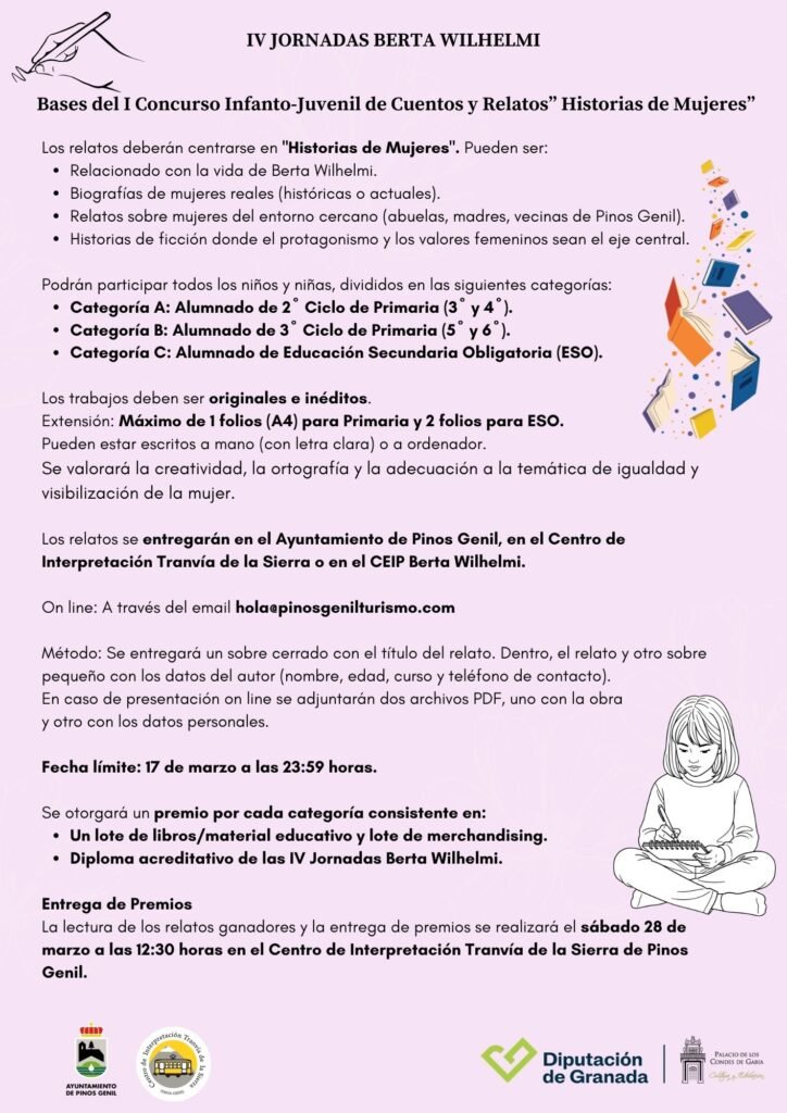 El Ayuntamiento de Pinos Genil convoca el I Concurso Infanto-Juvenil de Cuentos y Relatos “Historias de Mujeres”.